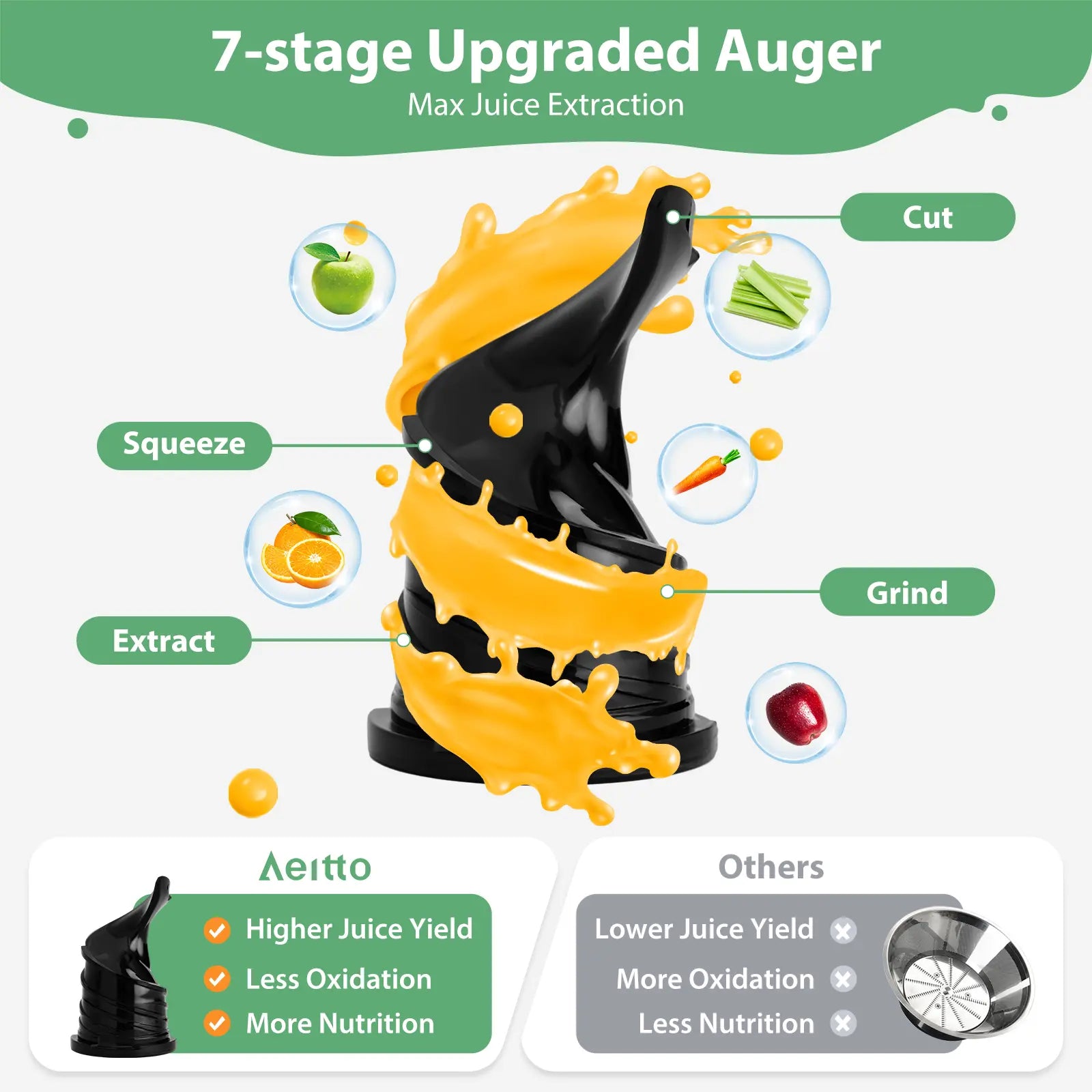 Aeitto Max5 Juicer, Cold Press Juicer with 5.8" Large Feed Chute,1.7L Large Capacity, 250W Whole Masticating Juicers for Vegetable and Fruit, High Juice Yield, Easy to Clean with Brush, Ice Fruit, BPA-Free, Smart recipes App
